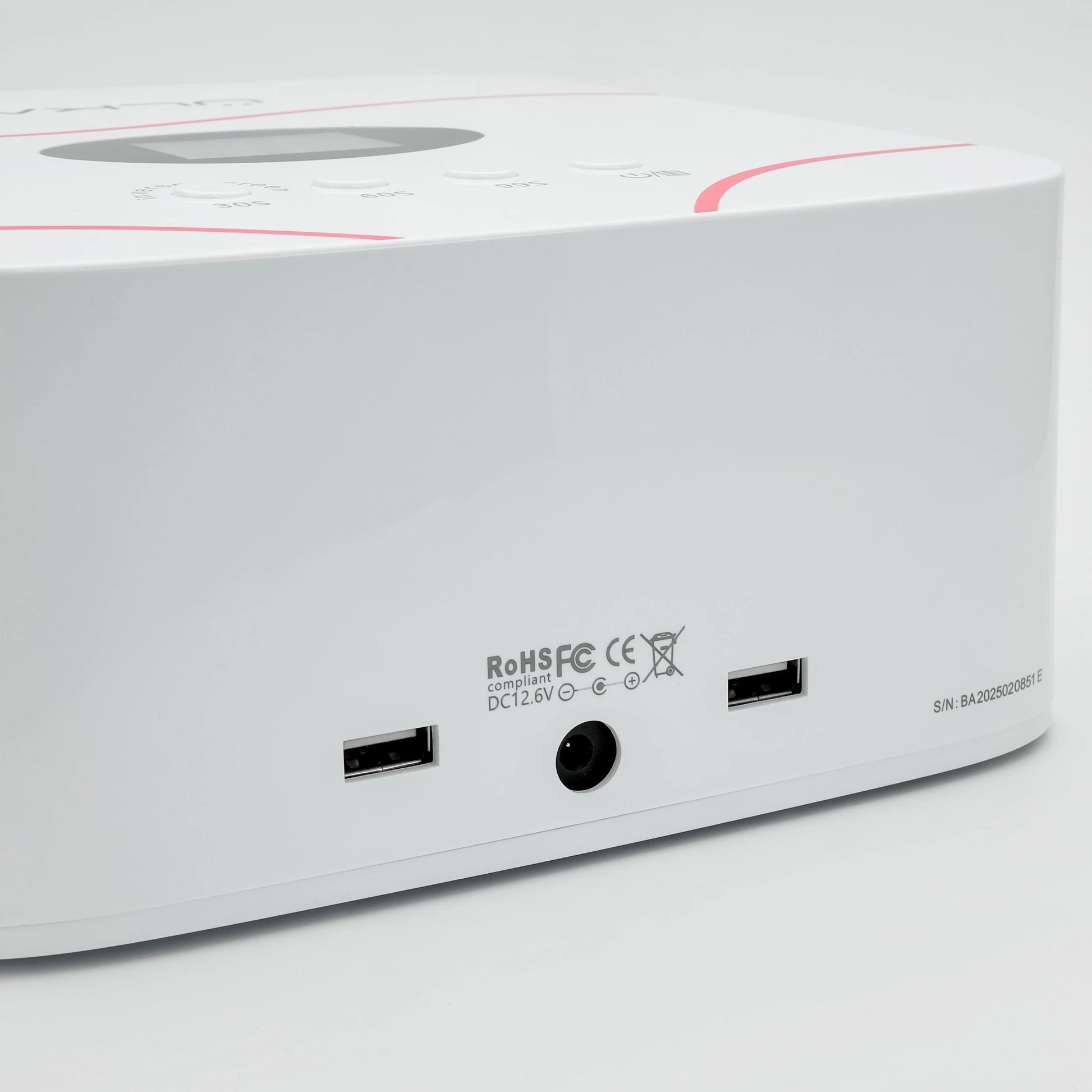 El diseño minimalista incluye temporizadores inteligentes, sensor automático, base desmontable para pedicure y puertos USB, lo que la convierte en una herramienta versátil tanto para estudio como para servicios móviles.